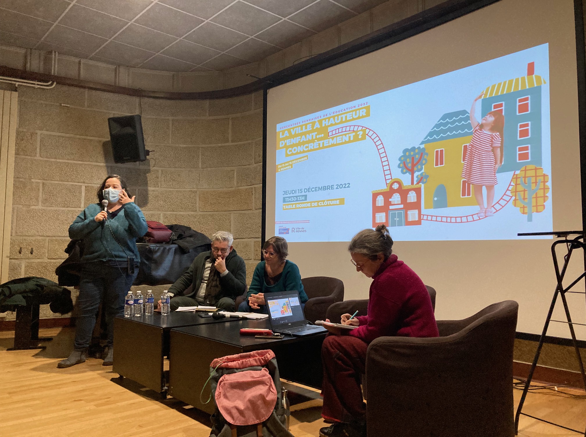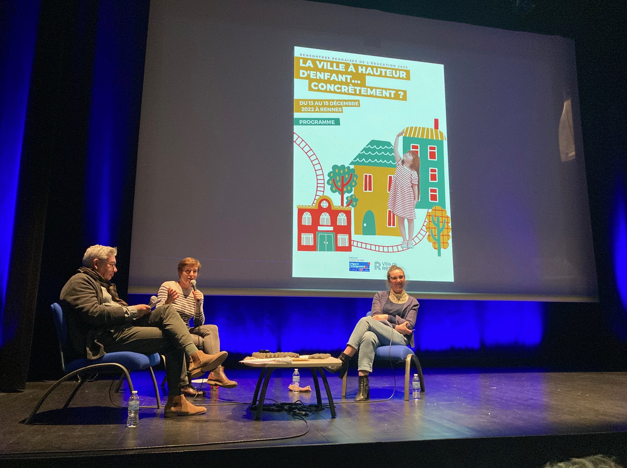 Modération des quatre tables rondes des rencontres rennaises de l’éducation 2022 La ville à hauteur d’enfant… concrètement ? les 13, 14 et 15 décembre 2022. Avec, notamment, Gaëlle Rougier, adjointe à l’Éducation à la Ville de Rennes, Sandrine Depeau, chargée de recherches CNRS à l’Université Rennes 2, Moïna Fauchier-Delavigne, journaliste, autrice et co-fondatrice de La Fabrique des communs pédagogique, Elsa Koerner, doctorante en sociologie à l’Université Rennes 2. Marie-Anaïs Le Breton, docteure en Aménagement de l’Espace et Urbanisme, ATER à l’Université Rennes, Ghislain Leroy, maître de conférences en Sciences de l’éducation à l’Université Rennes 2, Lucile Koch, élue de la Ville de rennes déléguée à la Ville à hauteur d’enfant, Patricia Loncle, professeure des universités en sociologie à l’EHESP, Cécile Casey, fondatrice de l’association “Les Enfants s’organisent ».